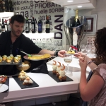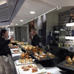 Beautifully-presented platters of great quality cold pintxos are so enticing, whilst the back wall of the bar displays large illustrations of the creative pintxos that are cooked to order. (Menu cards are also available).