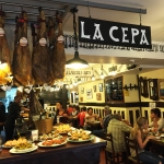 And it’s the platters of Iberico ham that La Cepa is well known for – arguably the best in San Sebastian. You can’t go wrong with a plate of seasonal mushrooms either, if you haven’t filled up on the cold pintxos from the bar (which we usually do). They have menu cards in different languages if you’re not confident enough to read the Spanish blackboards.